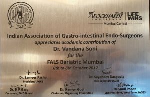 - Dr. Soni has been conferred the designation of ‘Surgeon of Excellence for Bariatric Surgery by the Surgical Review Corporation, USA.